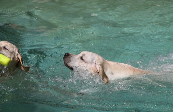 La piscine a été aménagée pour les chiens... PLOUF à venir !