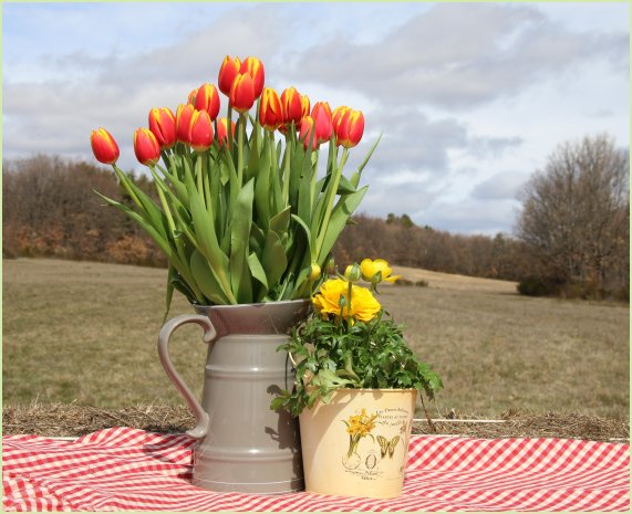 Printemps avec roses et fleurs...........................................Eté avec abeilles et lumière