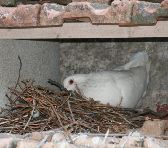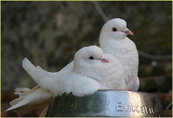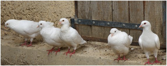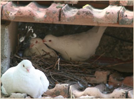 Notre grande famille de pigeons blancs tous colocataires de nos poules...