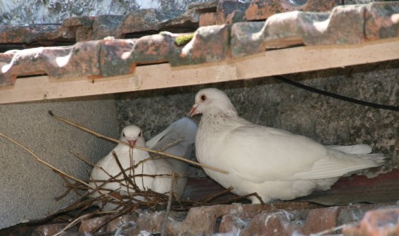 Le couvreur a découvert sous la toiture 2 pigeoneaux