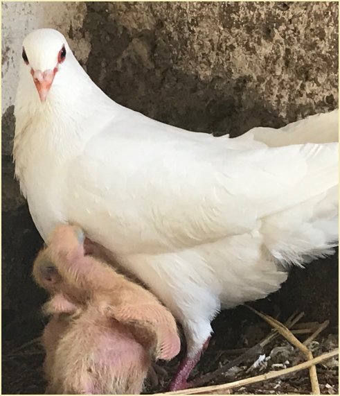 Les pigeonneaux se nourissent du "lait du jabot" produit par leurs deux parents,