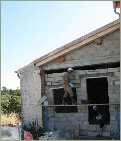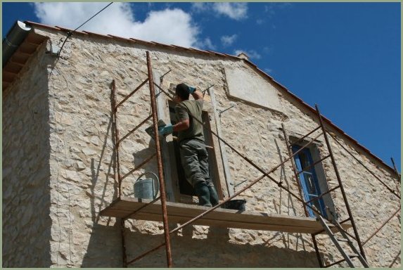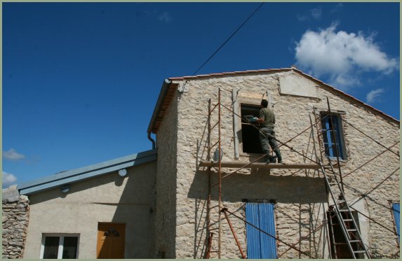 pierres sont enduites d'un mélange à base de chaux,