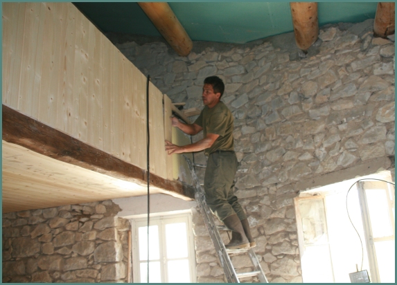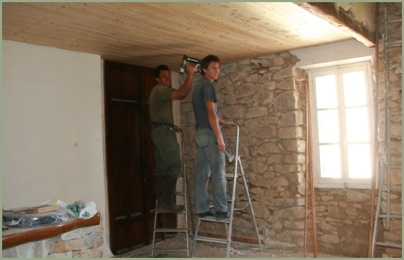 l'entrée, le salon/salle à manger encore en cours d'aménagement...