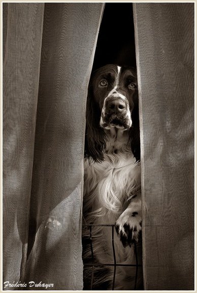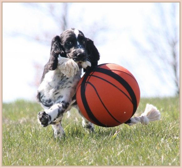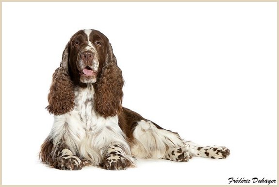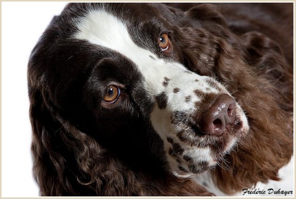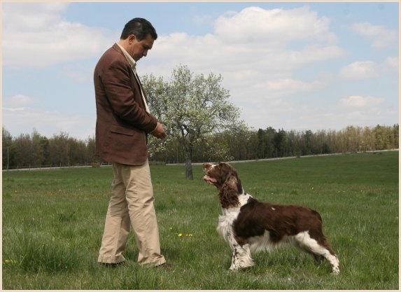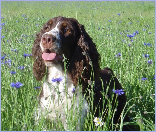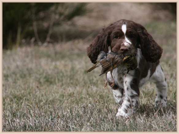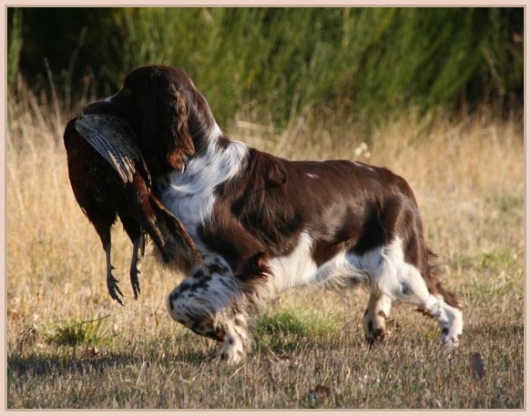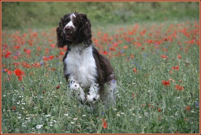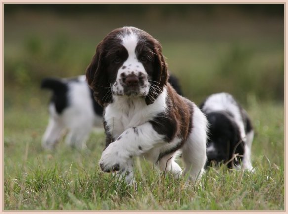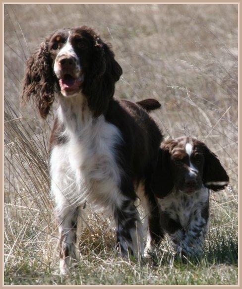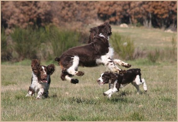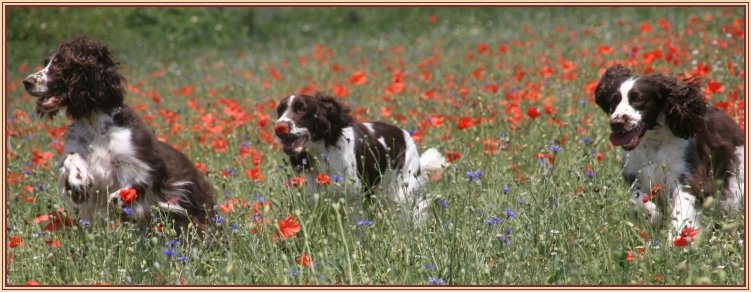 Connaissiez-vous les English Springers Spaniel ? Vous les découvrez pour leurs défauts qui au fond ne reflètent que leur joie de vivre... Voilà pourquoi Upland a ouvert la porte de notre coeur qui ne se referma jamais ! Depuis mi-janvier 2004, une petite nouvelle "chipie" est venue rejoindre les Labradors du Clos de Nissa-Bella... Nous nous intéressions depuis quelques années à ce compagnon de chasse aussi attachant que nos labradors. Petite Springer affectueuse et "pleine de vie", elle s'appelle :